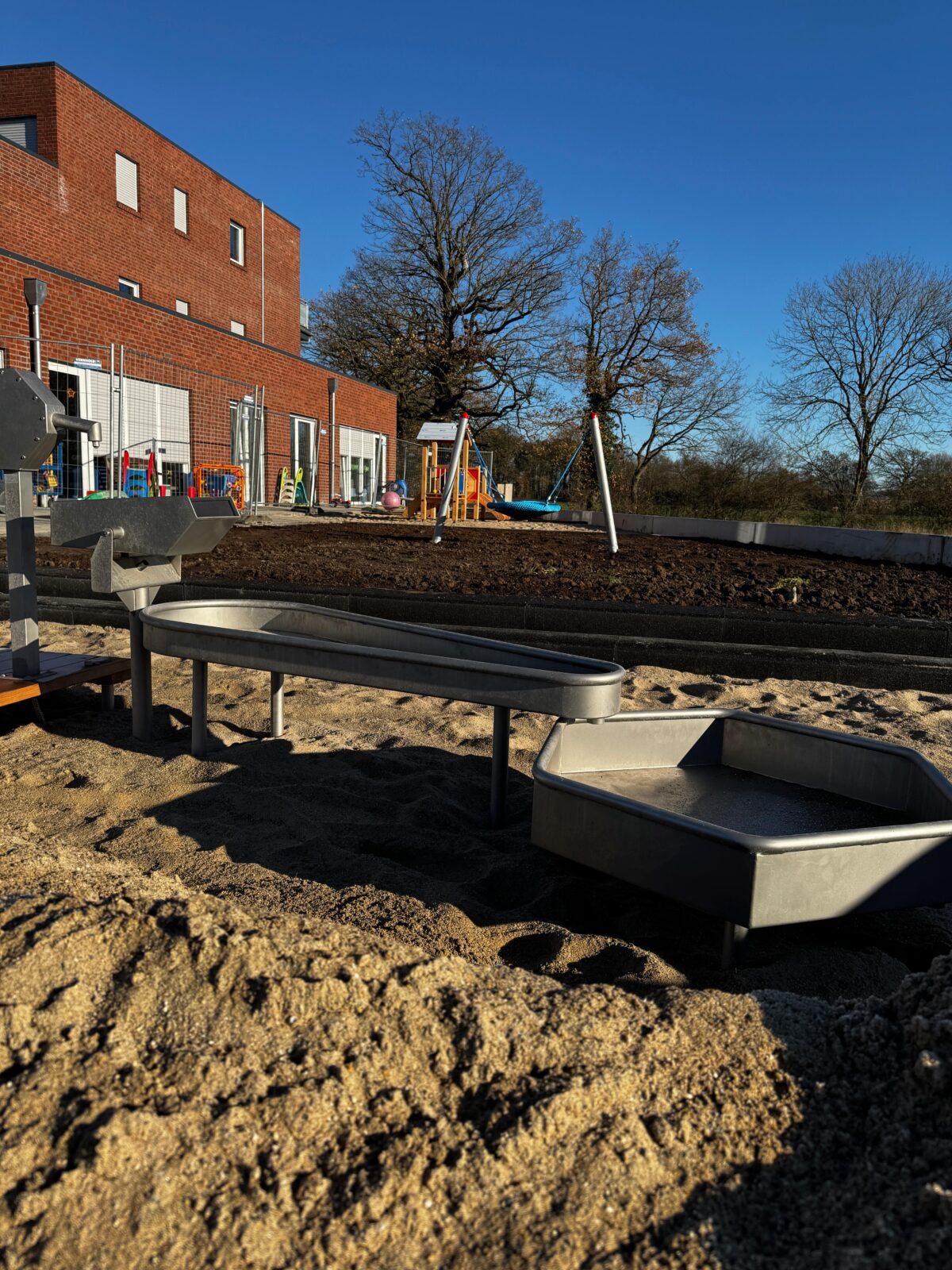 Für den Neubau einer Kindertagesstätte in Borghorst übernahmen wir die komplette Ausführung der Außenanlagengestaltung. Auftraggeber ist das Bistum Münster. Ziel war ein Außengelände, das täglichen Belastungen standhält und gleichzeitig funktional, sicher und langlebig ausgeführt ist. Die Außenanlagen wurden ganzheitlich geplant und umgesetzt. Sämtliche Flächen, Einbauten und Grünbereiche greifen ineinander und bilden ein robustes Gesamtgefüge – ausgelegt für den dauerhaften Kita-Betrieb bei jeder Witterung.